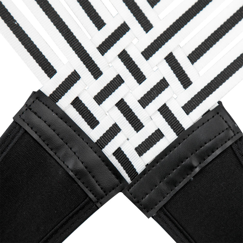 Su diseño trenzado tipo telaraña se ajusta automáticamente a los movimientos del cuerpo, proporcionando soporte sin rigidez ni incomodidad.